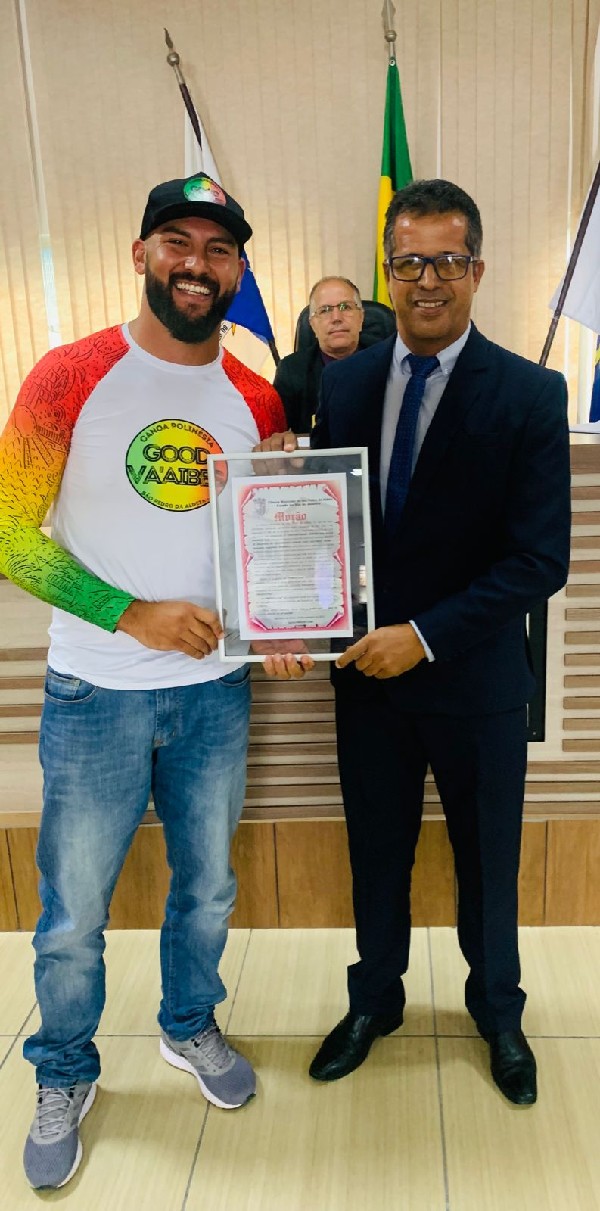 O vereador Isaias do Escolar (PROS), usou a tribuna no dia de hoje, para homenagear o Senhor Yury Coutinho Vieira, fundador do Club de Canoa Havaiana Good Va'aibes é responsável pelo projeto PUA, que incentiva a conservação da laguna e realiza diversos mutirões de limpeza nas praias.