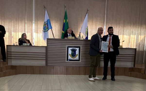 O vereador Jean Pierre (PODEMOS) usou a tribuna para entregar uma Moção de Aplausos ao Senhor Geraldo da Silva, pelos relevantes serviços prestados ao nosso Município.