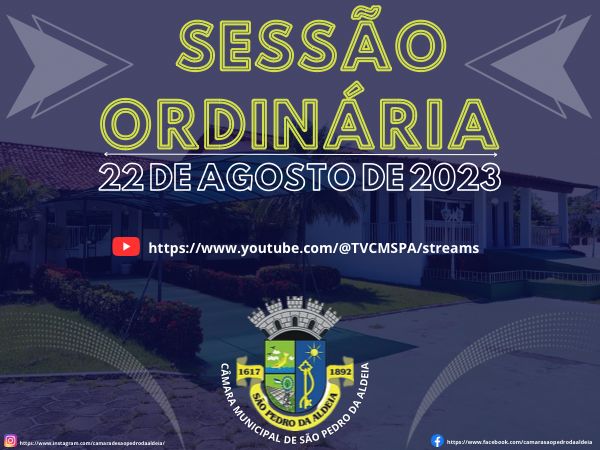 A próxima Sessão Ordinária da Câmara Municipal de São Pedro da Aldeia acontecerá quinta-feira (24), às 11h.
