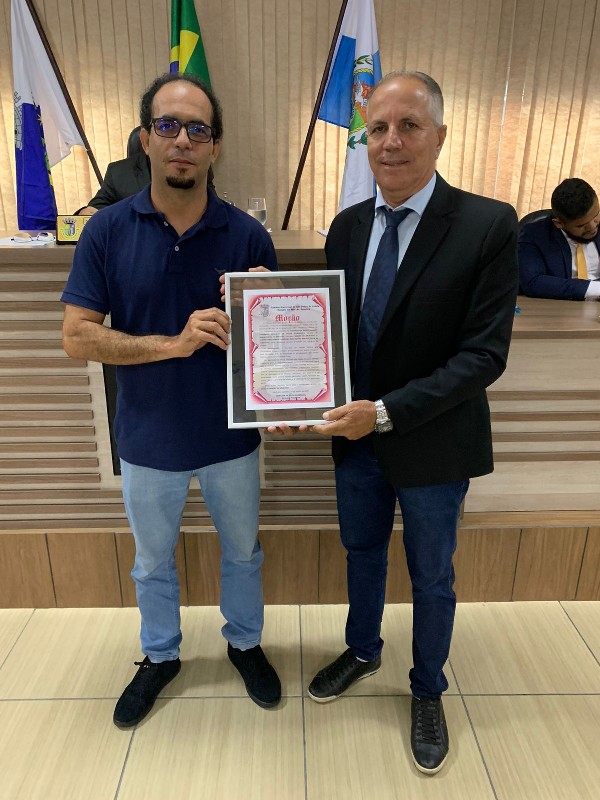 O primeiro membro da Casa Legislativa a subir à tribuna foi o Presidente da Câmara, o vereador Denilson Guimarães (SDD), que agraciou com uma Moção de Aplausos, o Fiscal de Urbanismo Cristiano Moura, pelos relevantes serviços prestados ao Município.
